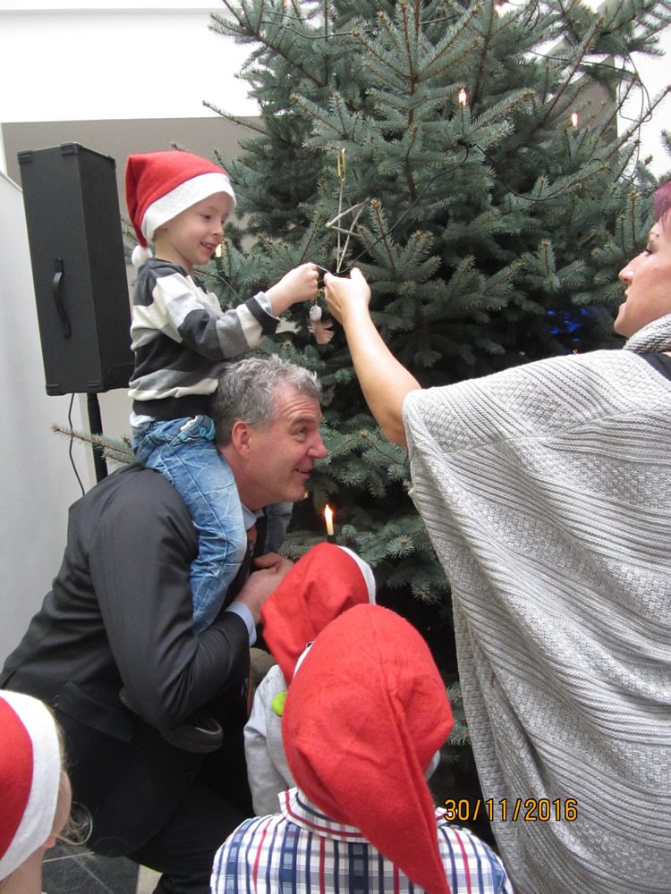 Gemeinsam mit Landtagspräsidentin Gabriele Brakebusch und Abgeordneten schmückten die Kinder den Weihnachtsbaum im Foyer des Parlaments mit den farbenfrohen Strohsternen, Papierherzen und bemalten Kugeln. Extra für den Ausflug nach Magdeburg hatten die Kleinen ein Programm einstudiert: Mit Weihnachtsliedern und Gedichten stimmten sie die Abgeordneten und Mitarbeiter auf die Weihnachtszeit ein.